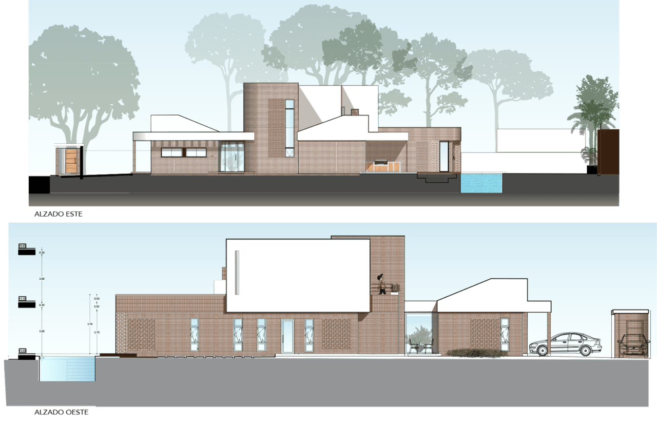 The schematic design for this 242m² house is tucked away in a quiet neighbourhood, surrounded by protected pine trees. The exterior features classic brickwork mixed with the local whitewashing technique, strategically placed windows to allow natural light and glimpses of the trees. A glass corridor serves as a transitional space, separating the office from the main house as it leads into a double-height foyer. The living area features an open floor plan, creating a spacious feel, with large sliding doors leading to a moveable deck that connects to the pool blending into it’s natural surroundings.